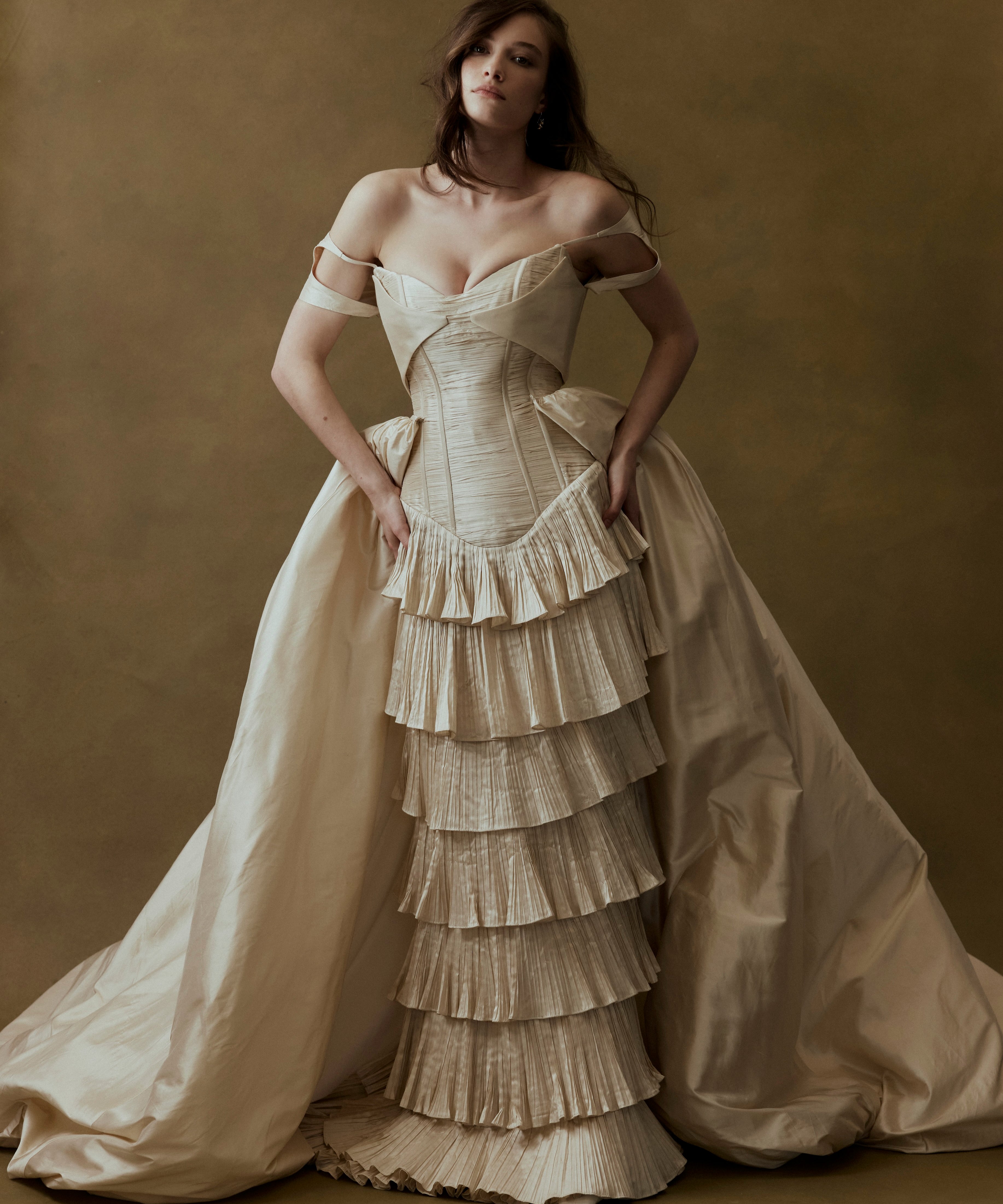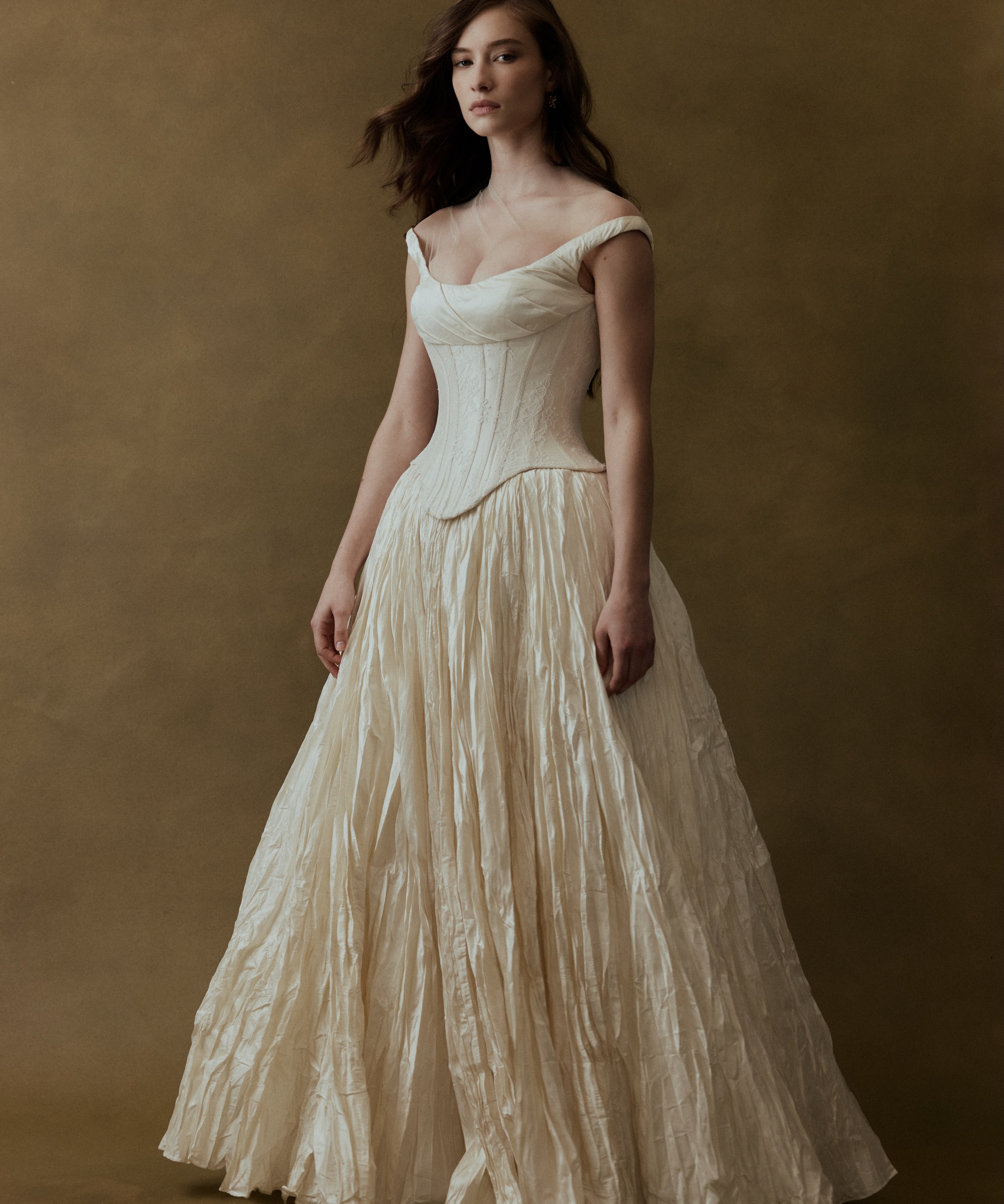 Every FLOURE gown is imagined and designed in Australia, then brought to life by skilled artisans who share the same devotion to craft. Using fine silks, hand-pleated fabrics, and laces, each gown is hand-finished with care—combining modern silhouettes with traditional couture techniques. This ensures that every bride who wears FLOURE carries a gown that is both globally inspired and intimately crafted.