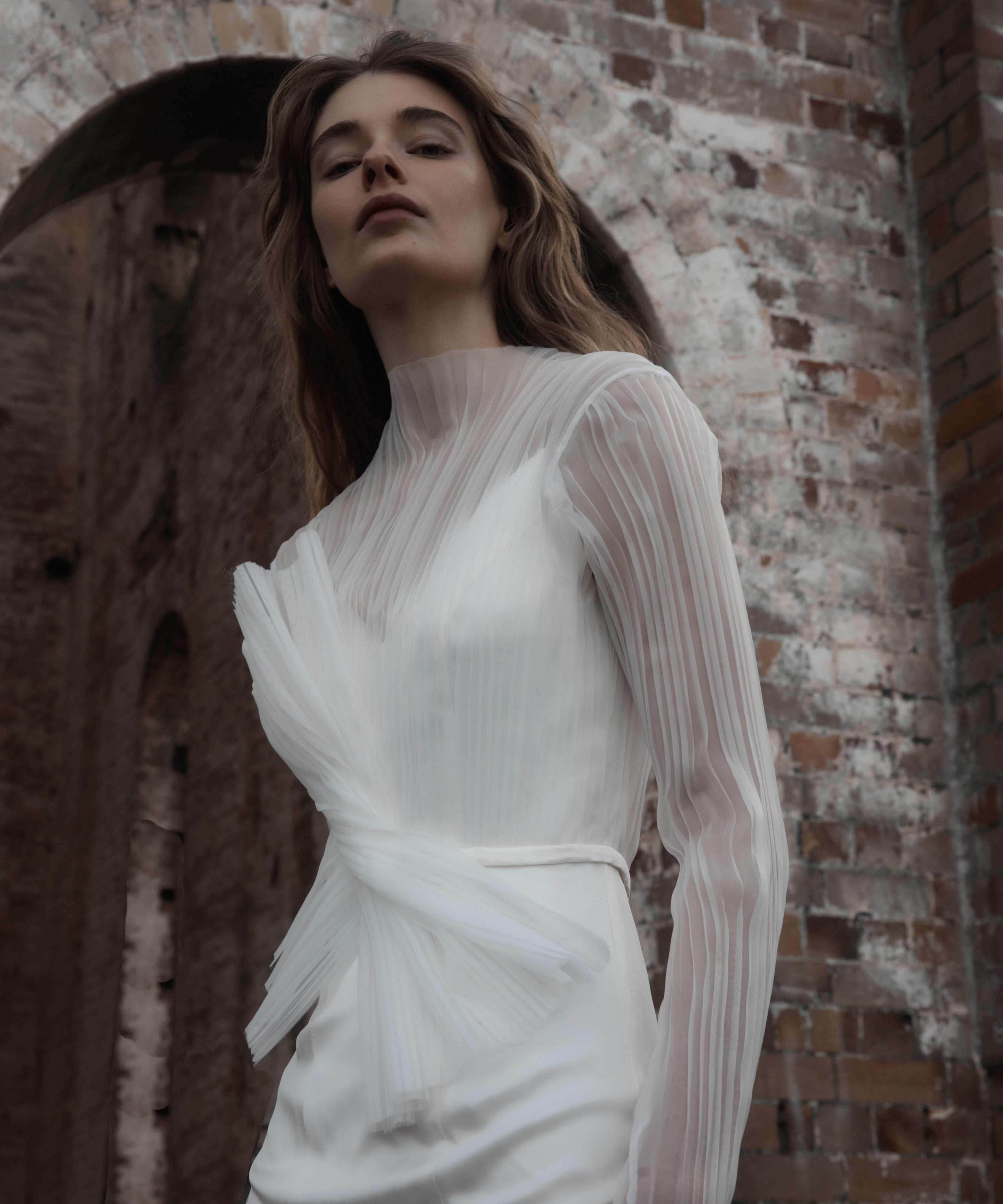 Every FLOURE gown is imagined and designed in Australia, then brought to life by skilled artisans who share the same devotion to craft. Using fine silks, hand-pleated fabrics, and laces, each gown is hand-finished with care—combining modern silhouettes with traditional couture techniques. This ensures that every bride who wears FLOURE carries a gown that is both globally inspired and intimately crafted.