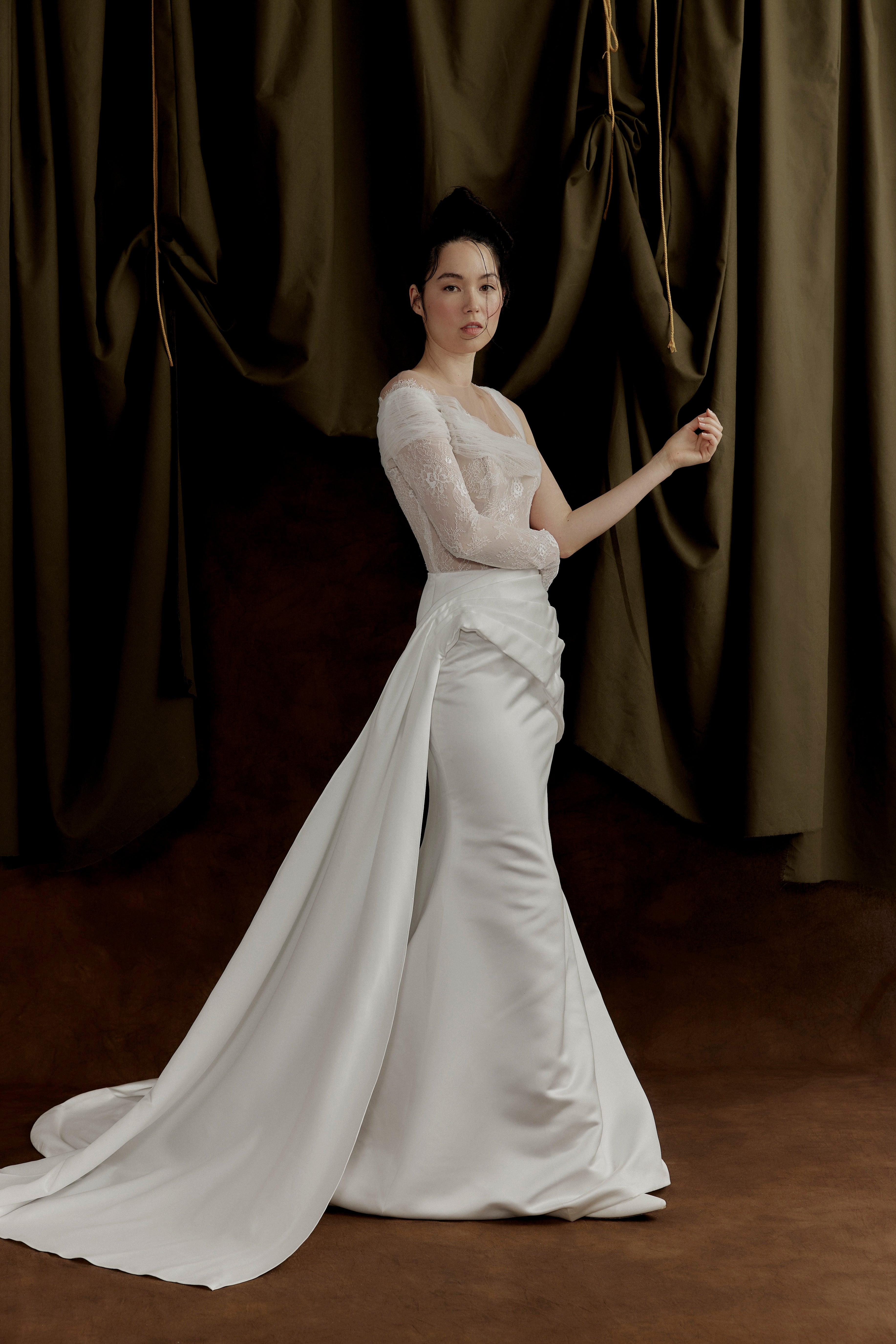 Every FLOURE gown is imagined and designed in Australia, then brought to life by skilled artisans who share the same devotion to craft. Using fine silks, hand-pleated fabrics, and laces, each gown is hand-finished with care—combining modern silhouettes with traditional couture techniques. This ensures that every bride who wears FLOURE carries a gown that is both globally inspired and intimately crafted.