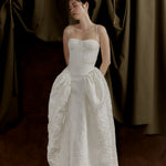 Every FLOURE gown is imagined and designed in Australia, then brought to life by skilled artisans who share the same devotion to craft. Using fine silks, hand-pleated fabrics, and laces, each gown is hand-finished with care—combining modern silhouettes with traditional couture techniques. This ensures that every bride who wears FLOURE carries a gown that is both globally inspired and intimately crafted.
