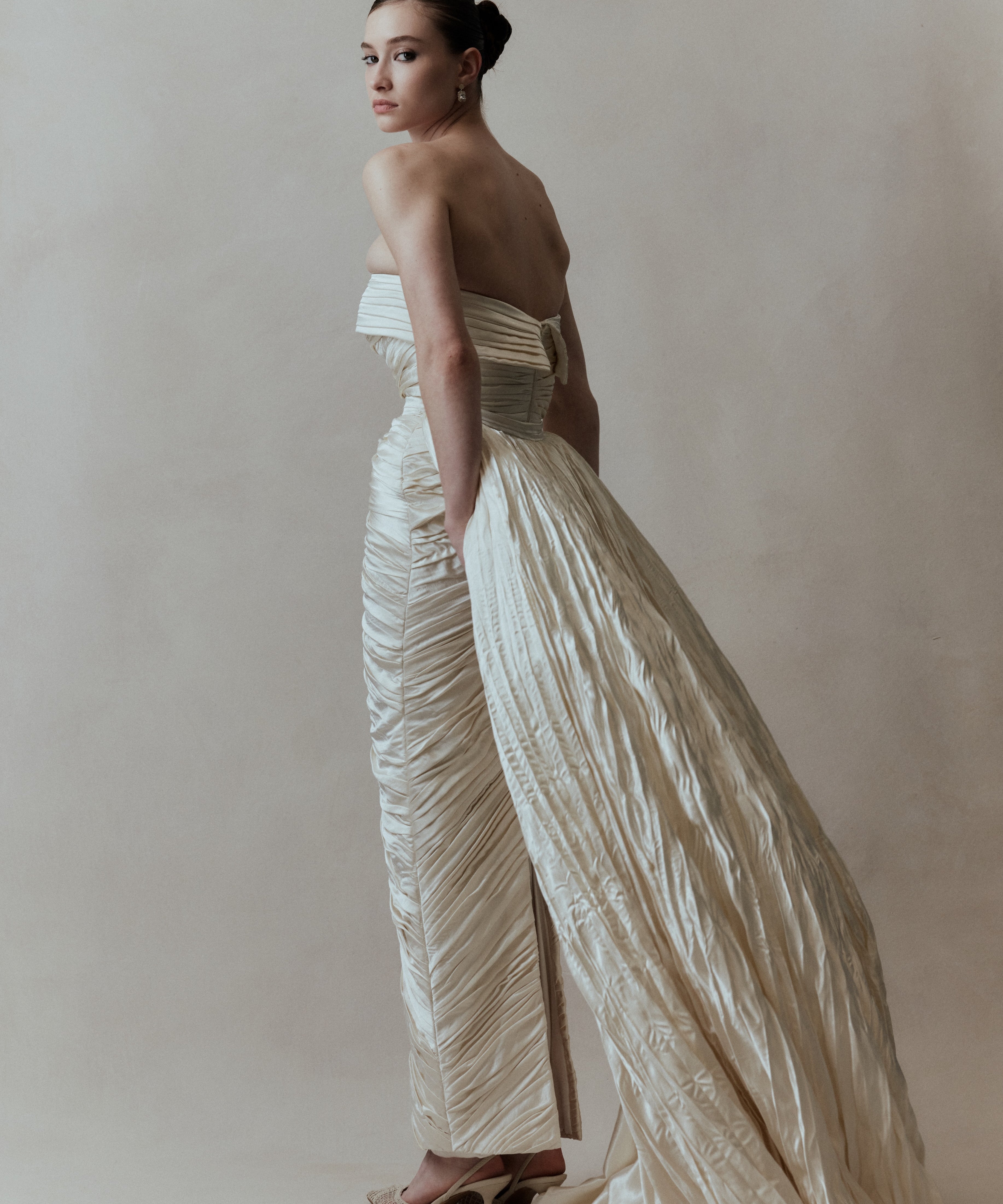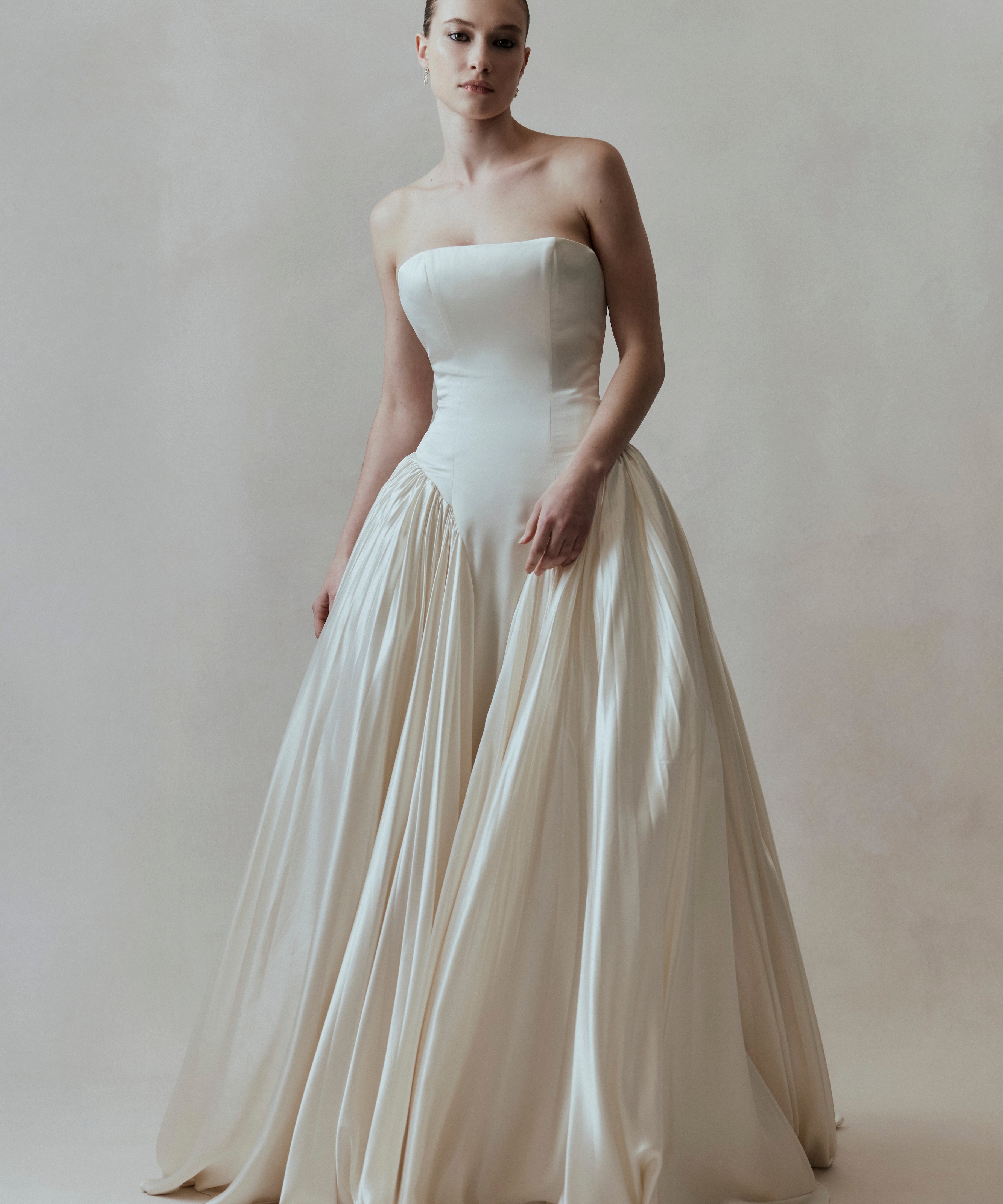 Every FLOURE gown is imagined and designed in Australia, then brought to life by skilled artisans who share the same devotion to craft. Using fine silks, hand-pleated fabrics, and laces, each gown is hand-finished with care—combining modern silhouettes with traditional couture techniques. This ensures that every bride who wears FLOURE carries a gown that is both globally inspired and intimately crafted.
