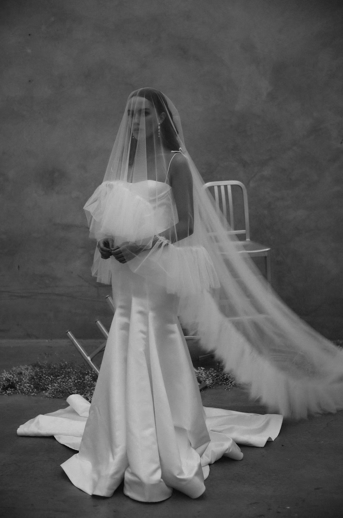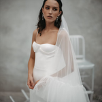 An ethereal touch of ruffle hem on a soft tulle 3 Metres veil.