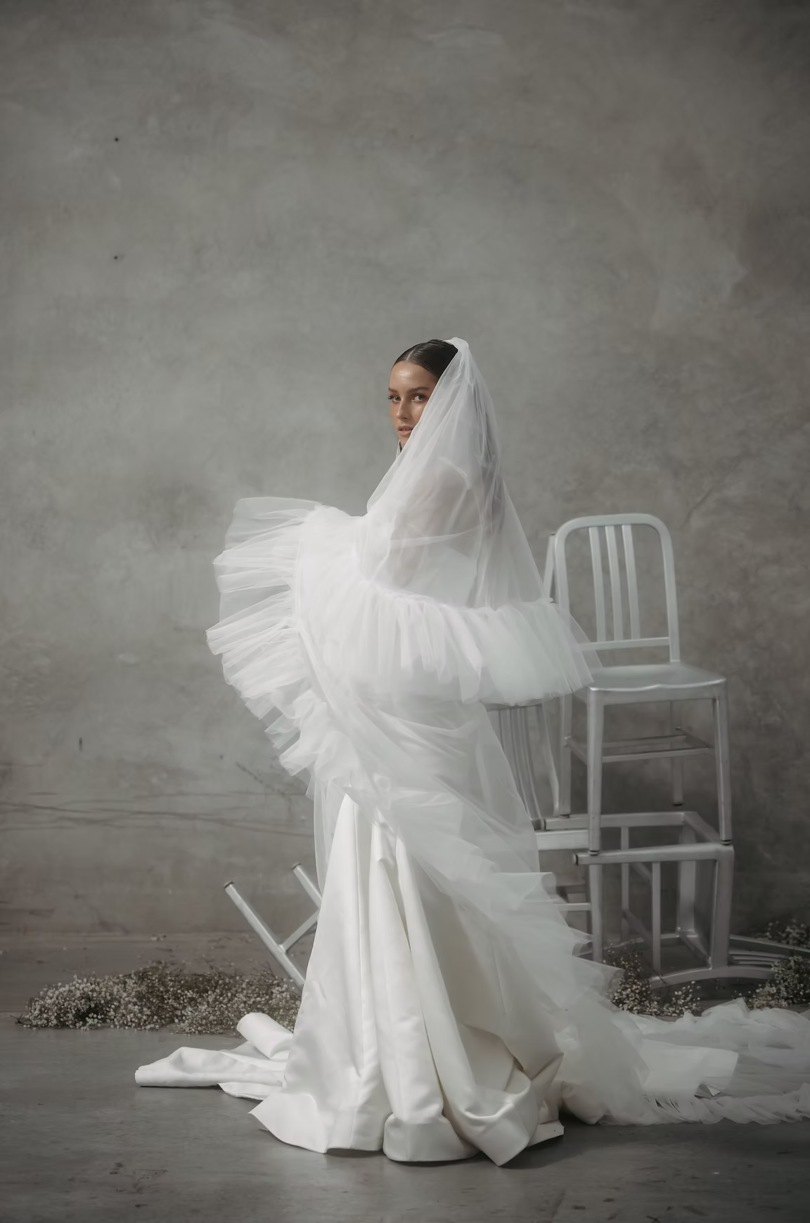 Every FLOURE gown is imagined and designed in Australia, then brought to life by skilled artisans who share the same devotion to craft. Using fine silks, hand-pleated fabrics, and laces, each gown is hand-finished with care—combining modern silhouettes with traditional couture techniques. This ensures that every bride who wears FLOURE carries a gown that is both globally inspired and intimately crafted.