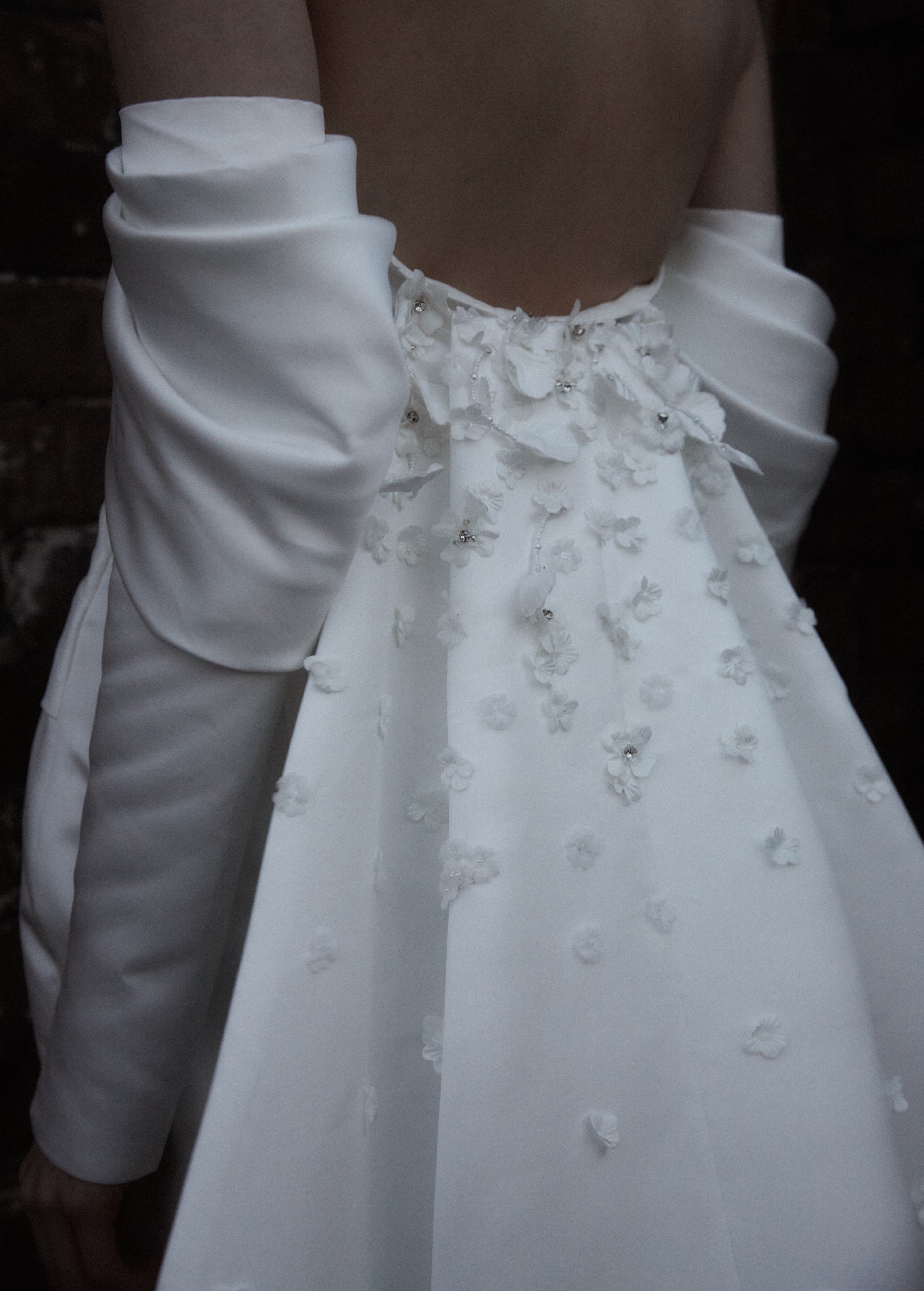 To add more drama, a detachable 3 Metres train Claude cape features hand beaded 3D flowers detail.