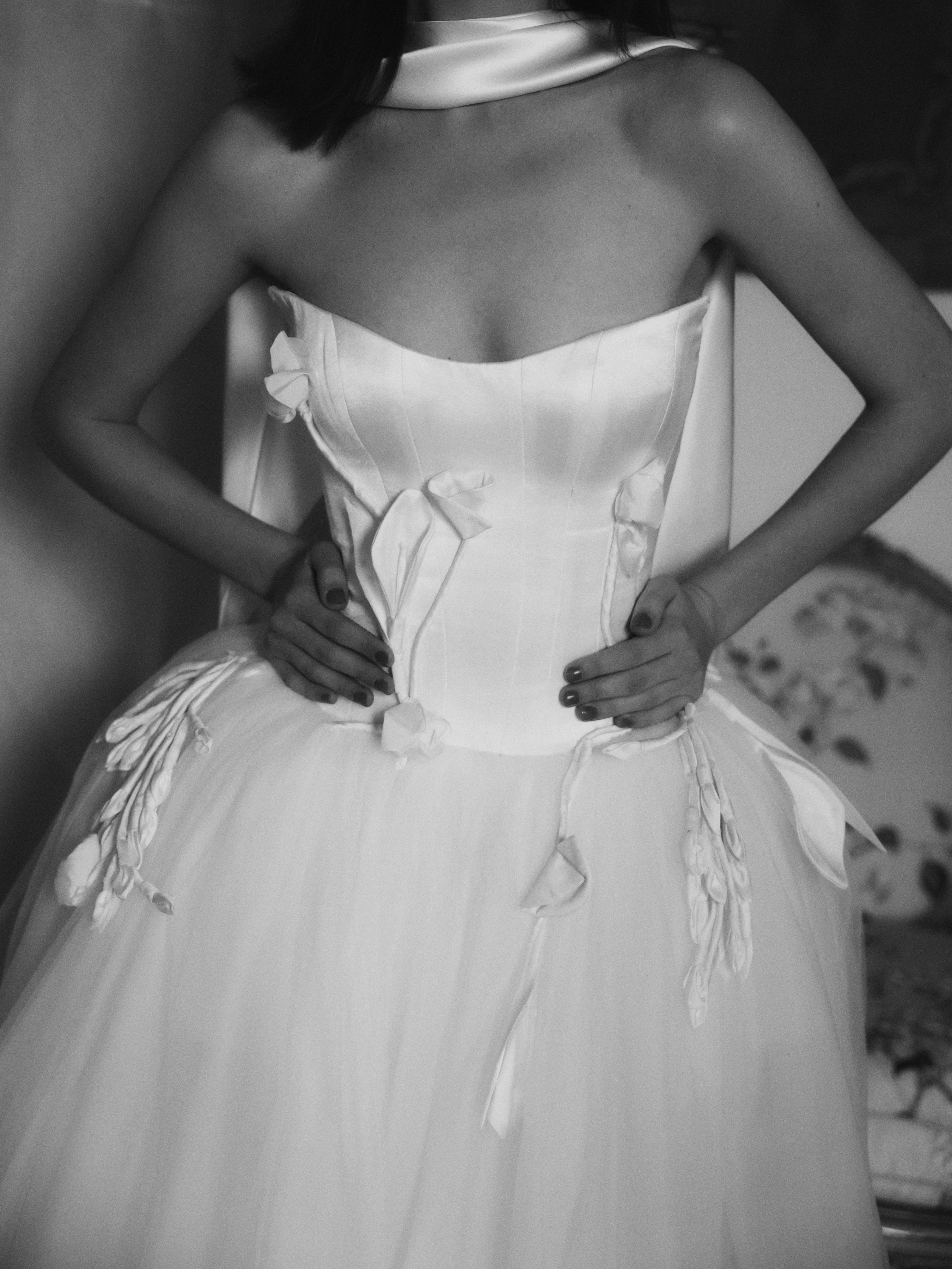 Every FLOURE gown is imagined and designed in Australia, then brought to life by skilled artisans who share the same devotion to craft. Using fine silks, hand-pleated fabrics, and laces, each gown is hand-finished with care—combining modern silhouettes with traditional couture techniques. This ensures that every bride who wears FLOURE carries a gown that is both globally inspired and intimately crafted.