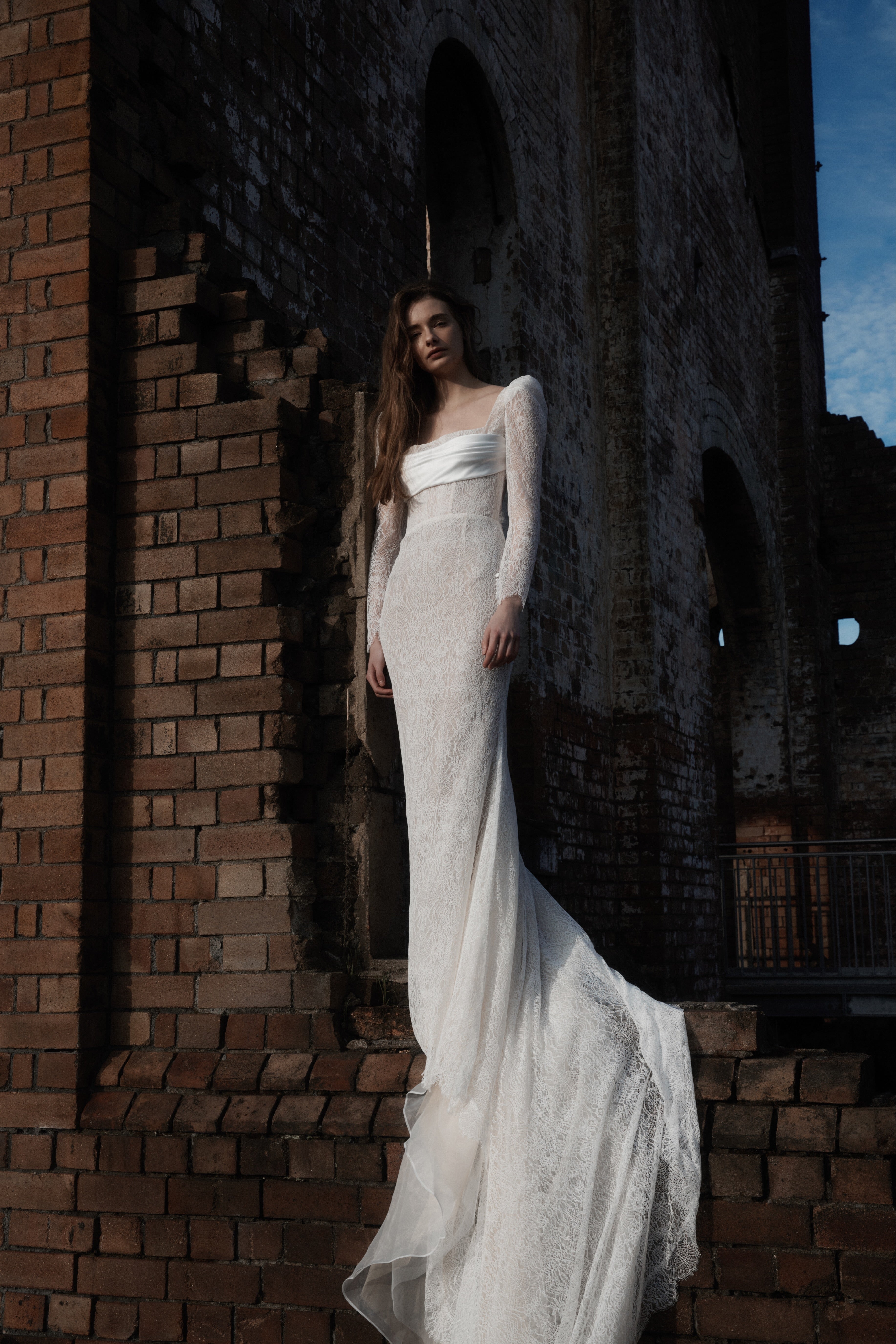 Every FLOURE gown is imagined and designed in Australia, then brought to life by skilled artisans who share the same devotion to craft. Using fine silks, hand-pleated fabrics, and laces, each gown is hand-finished with care—combining modern silhouettes with traditional couture techniques. This ensures that every bride who wears FLOURE carries a gown that is both globally inspired and intimately crafted.