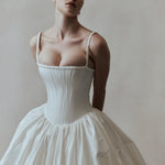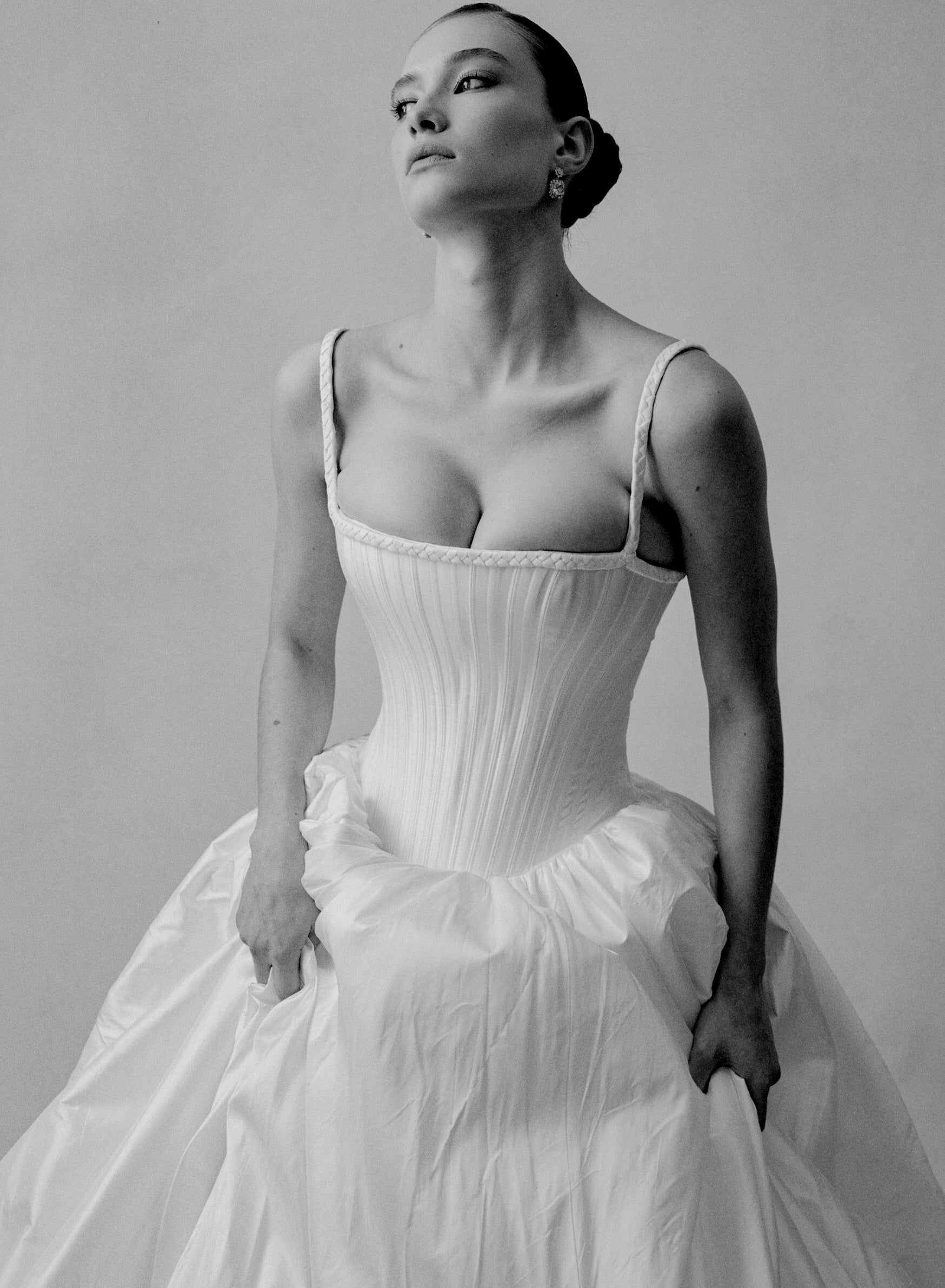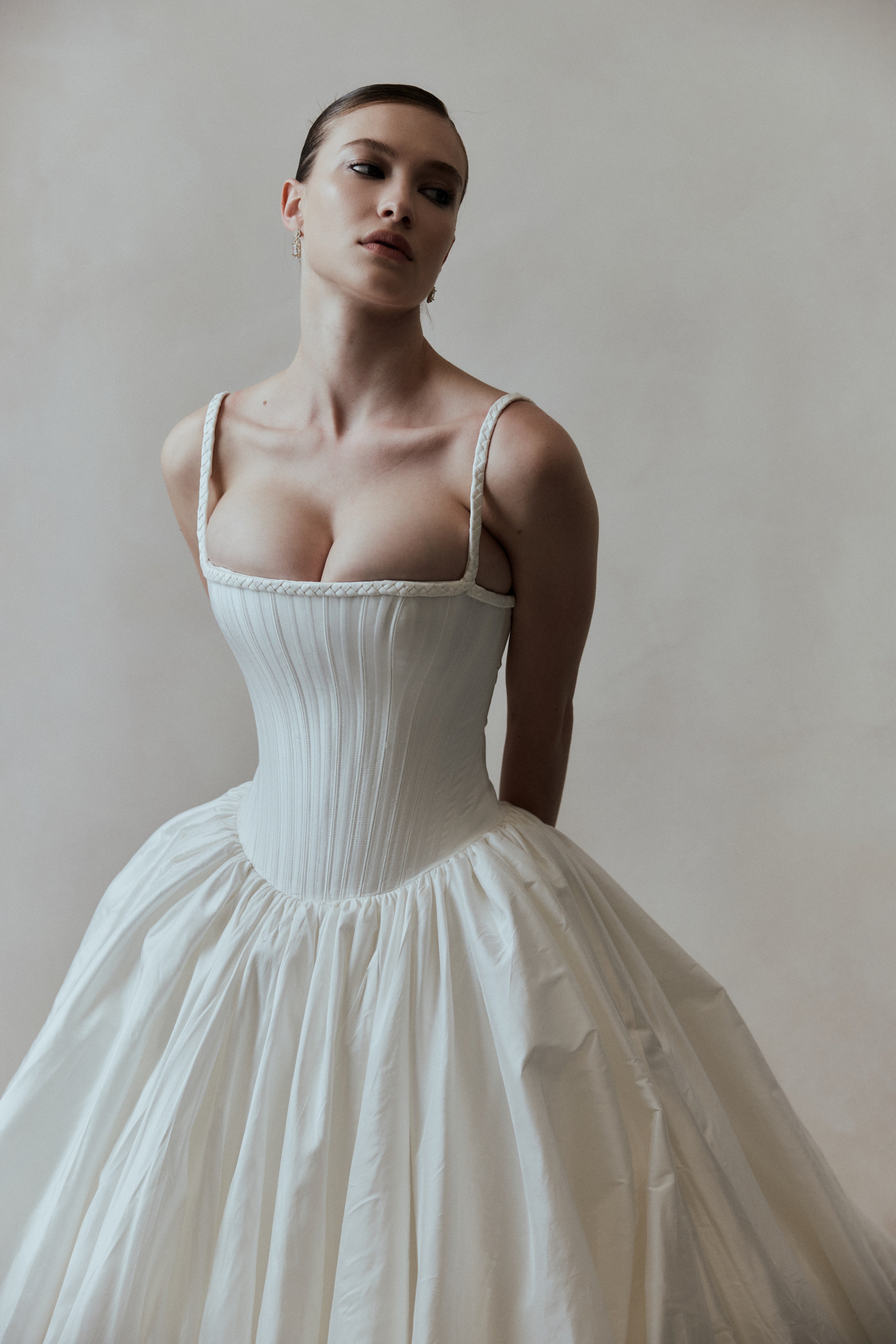 Every FLOURE gown is imagined and designed in Australia, then brought to life by skilled artisans who share the same devotion to craft. Using fine silks, hand-pleated fabrics, and laces, each gown is hand-finished with care—combining modern silhouettes with traditional couture techniques. This ensures that every bride who wears FLOURE carries a gown that is both globally inspired and intimately crafted.