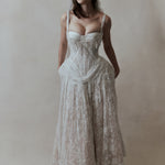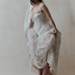 Every FLOURE gown is imagined and designed in Australia, then brought to life by skilled artisans who share the same devotion to craft. Using fine silks, hand-pleated fabrics, and laces, each gown is hand-finished with care—combining modern silhouettes with traditional couture techniques. This ensures that every bride who wears FLOURE carries a gown that is both globally inspired and intimately crafted.