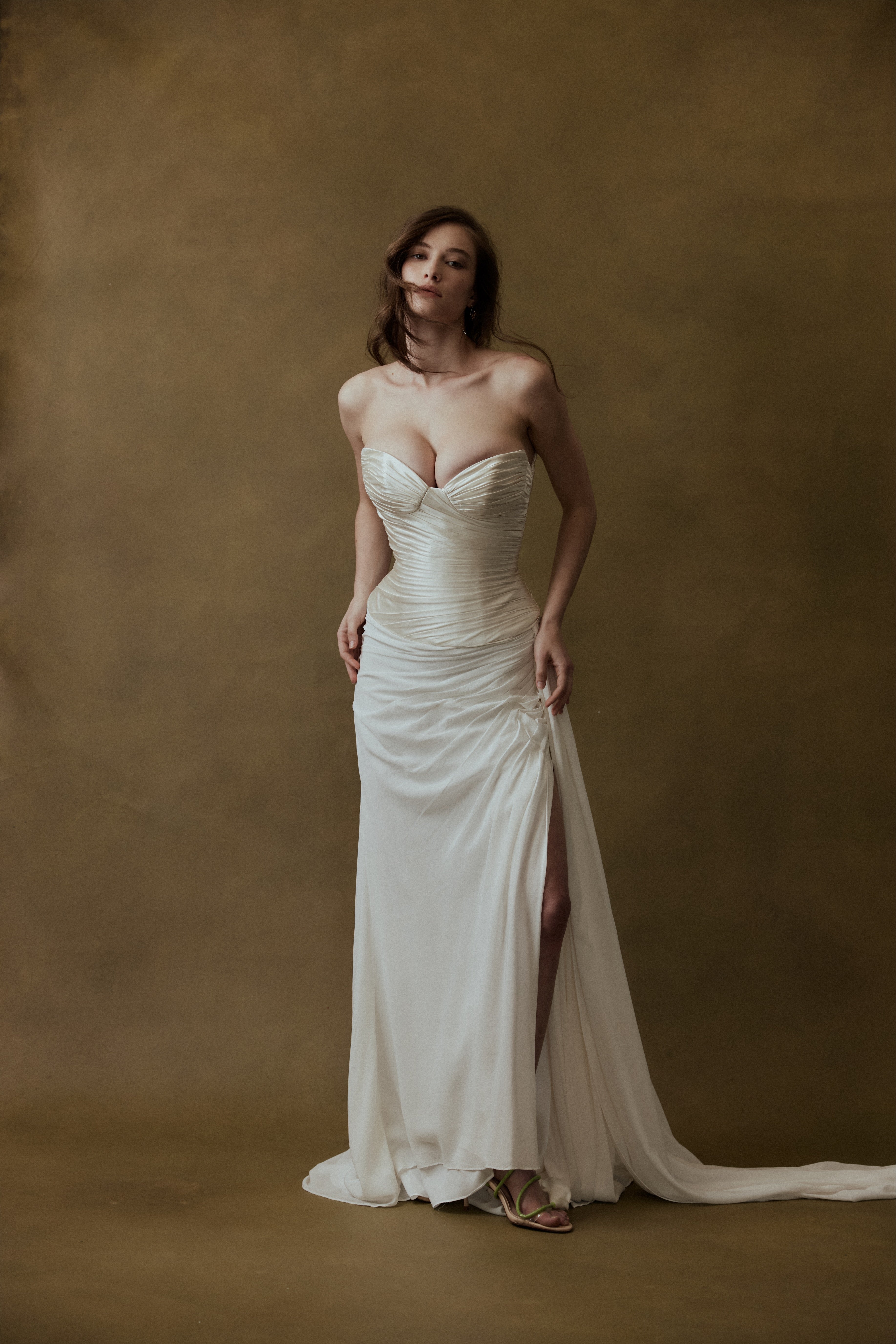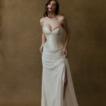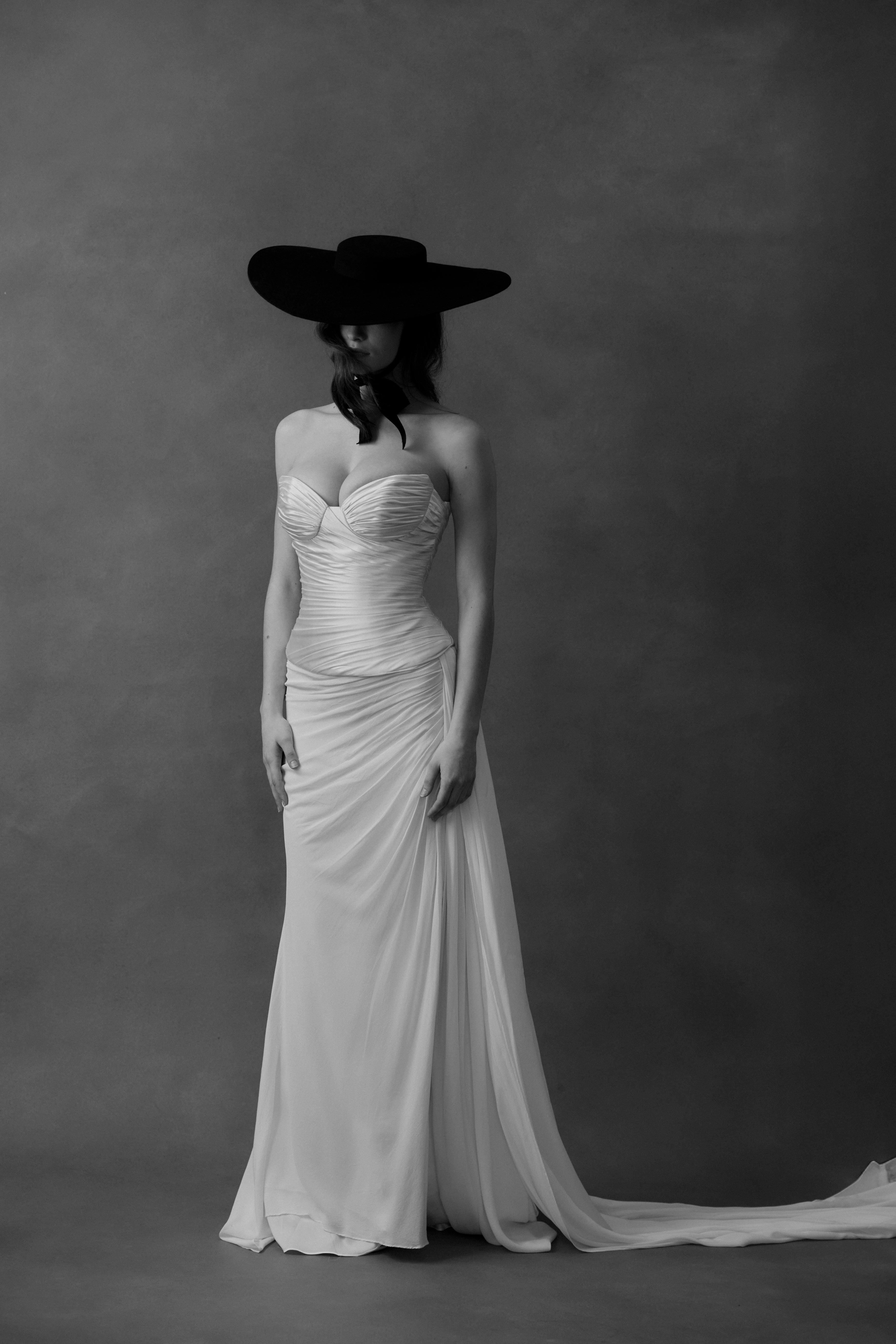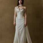 Every FLOURE gown is imagined and designed in Australia, then brought to life by skilled artisans who share the same devotion to craft. Using fine silks, hand-pleated fabrics, and laces, each gown is hand-finished with care—combining modern silhouettes with traditional couture techniques. This ensures that every bride who wears FLOURE carries a gown that is both globally inspired and intimately crafted.