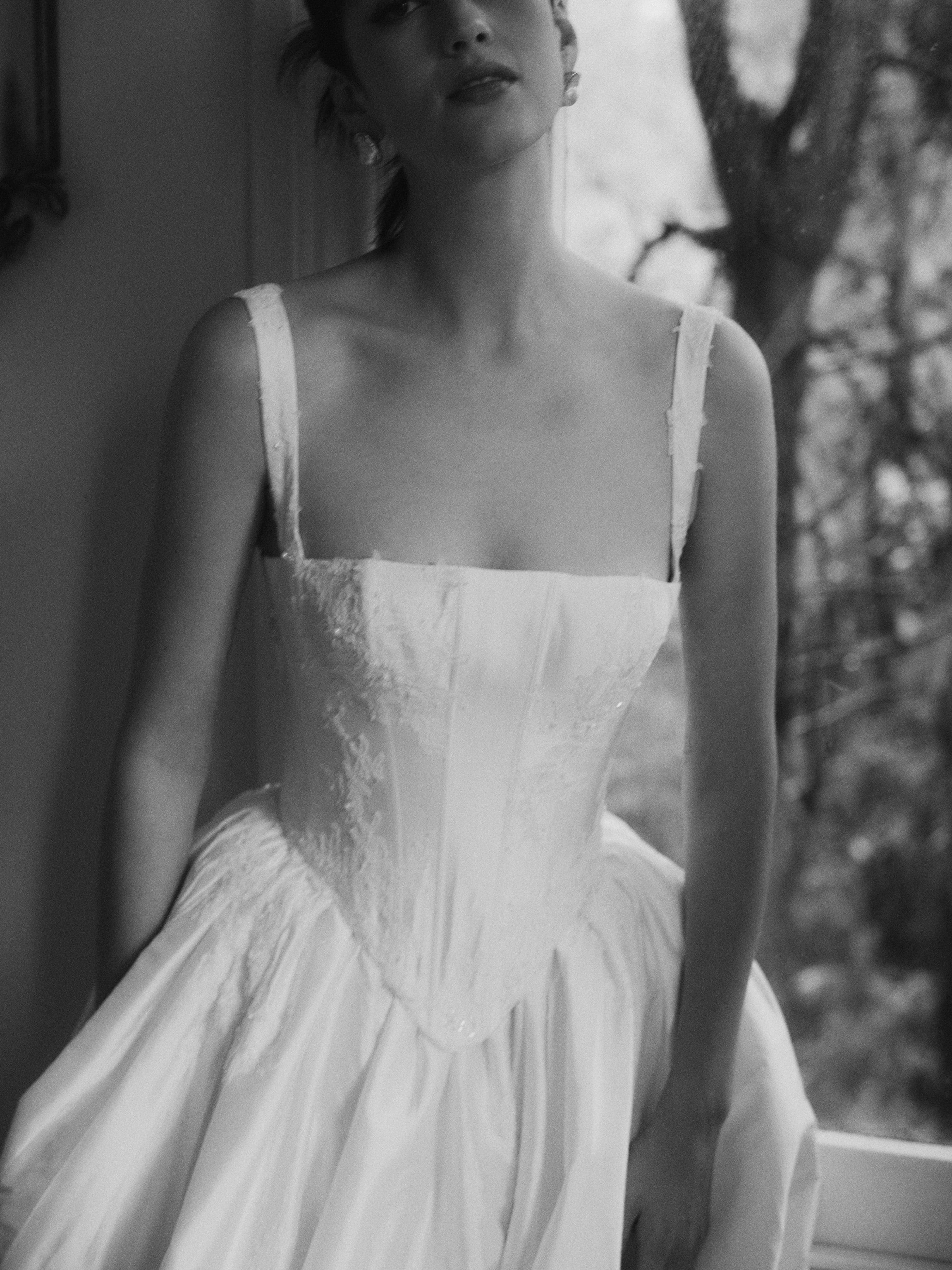 Every FLOURE gown is imagined and designed in Australia, then brought to life by skilled artisans who share the same devotion to craft. Using fine silks, hand-pleated fabrics, and laces, each gown is hand-finished with care—combining modern silhouettes with traditional couture techniques. This ensures that every bride who wears FLOURE carries a gown that is both globally inspired and intimately crafted.